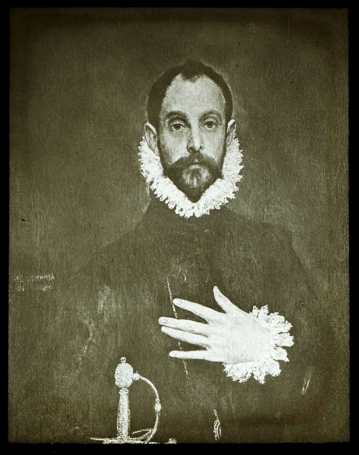 Portrait d'homme avec la main sur la poitrine