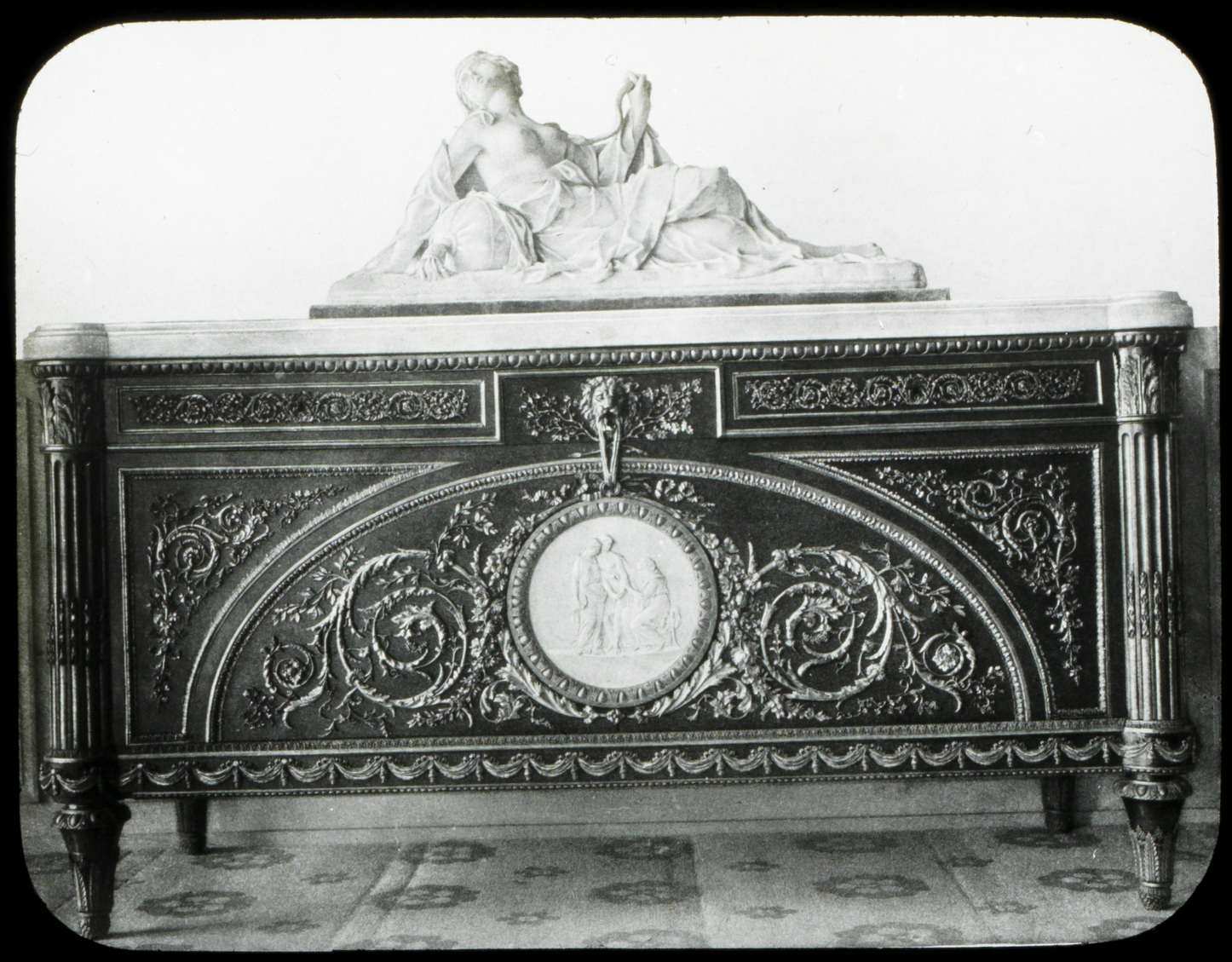 Commode en acajou et céramique glaçurée de style Louis XVI