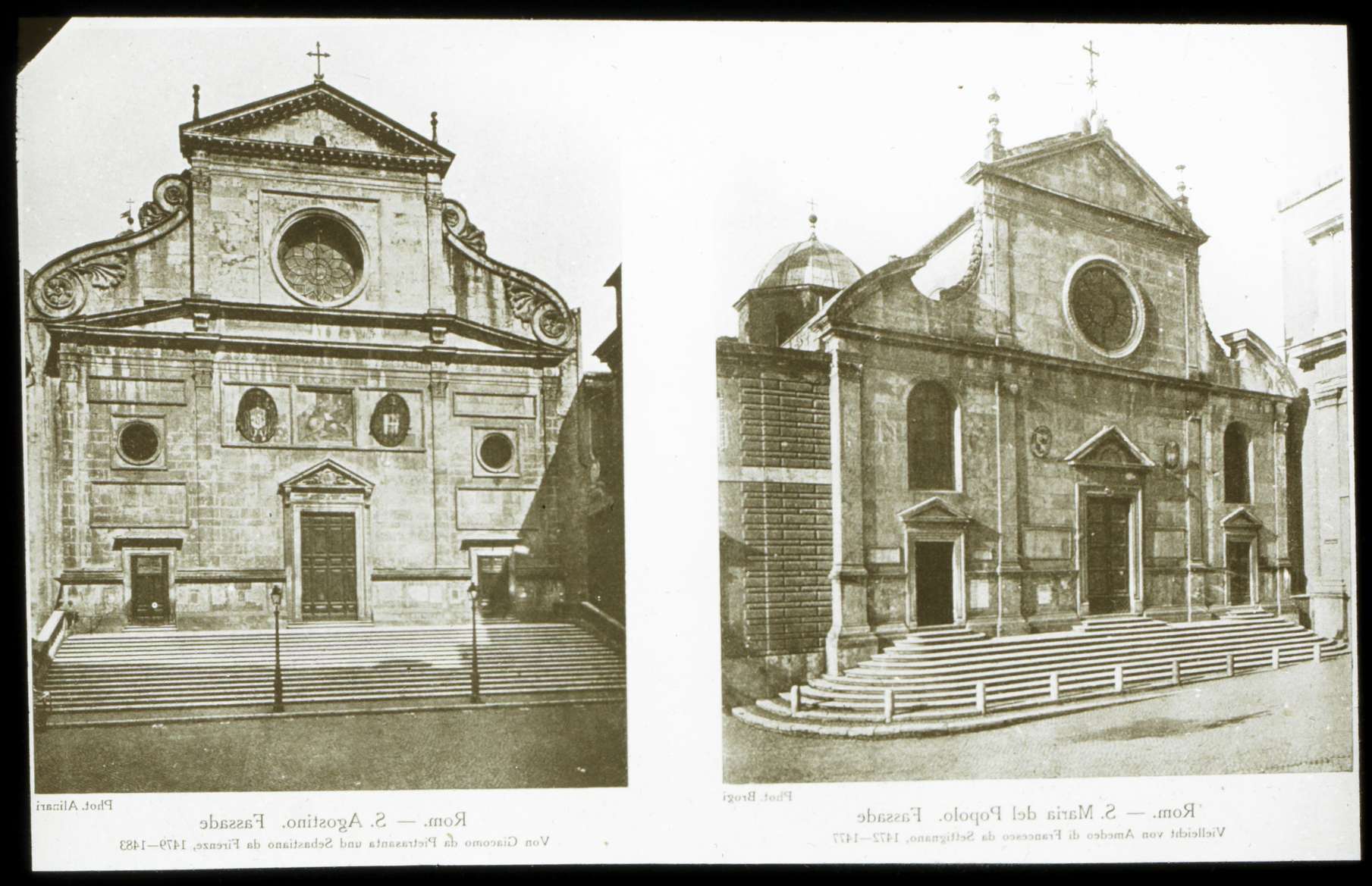 Eglises Santa Maria del Popolo, façade ouest ; église San Augustino, façade ouest