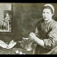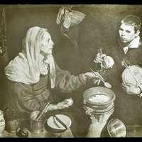 Vieille femme faisant frire des oeufs